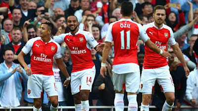 Sanchez scored with a sixth-minute back-heel and Mesut Ozil slotted home from Theo Walcott's cut-back a minute later before Sanchez's 18-yard thunderbolt completed the scoring in the 19th minute at a giddy Emirates Stadium. Sanchez has now scored six goals in three games and the Chilean's latest endeavours helped Arsenal recover from the shock of their 3-2 home defeat by Olympiakos in the Champions League last Tuesday.
